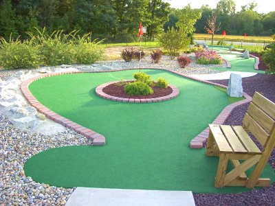 - requires a careful shot around the planter in the center to get to the hole. Your choice of going to the left or right.